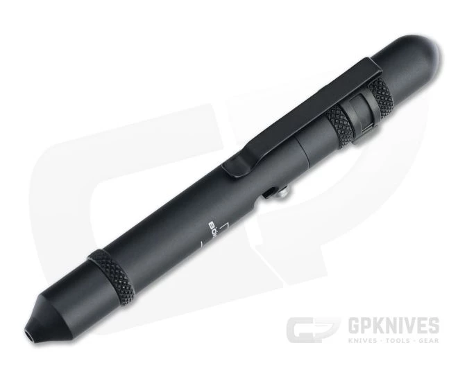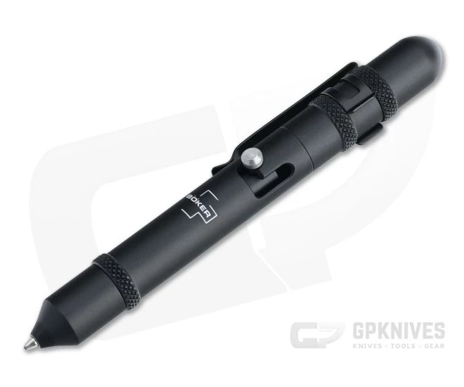 Following up on their popular Quest Commando pen, designers David Cyr and Kevin Passon deliver another winning Boker Plus collaboration in the Bit-Pen. As the name implies this compact bolt-action ink pen houses a hex bit driver inside the o-ring sealed cap that doubles as an impact tool. Black hard anodized aluminum makes the Bit-Pen discreet, lightweight and tough, ideal for multipurpose daily carry. A removable steel spring clip delivers secure carry. Includes Lamy M-22 cartridge.