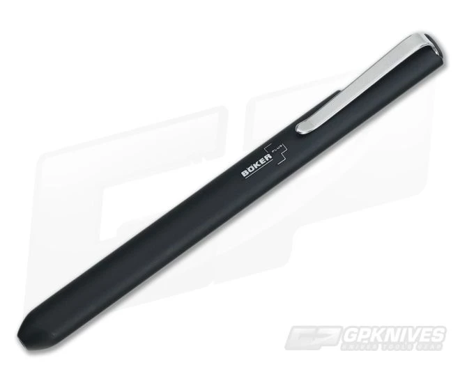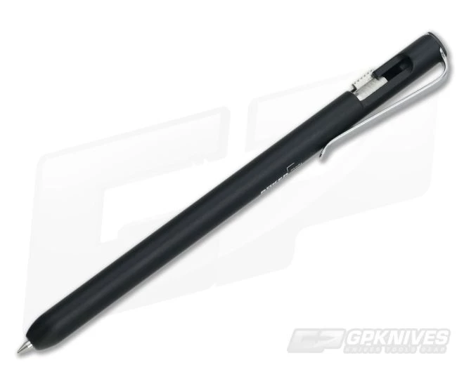 The Boker Plus version is built using black aluminum with black ink installed. It’s also simple and solid with its four-piece construction. Minus the ink cartridge and spring, it consists of the pen body, the bolt, pocket clip and end screw. That’s all there is to it! The black end screw is a Torx.