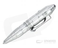 Sometimes you need a full size pen, and sometimes you want something a little smaller for convenience of carry. Heretic Knives Thoth gives you both. This modular bolt action design has a three part body, titanium ends with an aluminum barrel, that can be configured for full length (+5″) or compact carry (3 3/8″). Simply remove the center barrel and cartridge adaptor and reassemble, no tools required. Bolt action operation is smooth in either configuration and secure carry ensured via the milled clip with tension ball. This version has a stonewashed titanium and black aluminum body with blue anodized bolt.