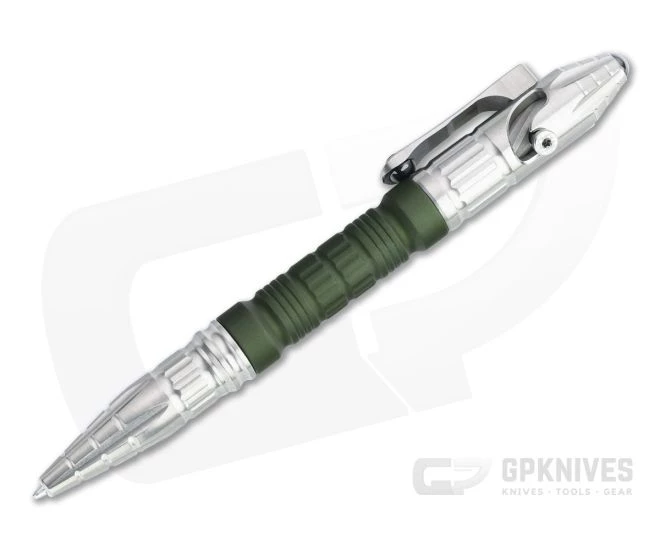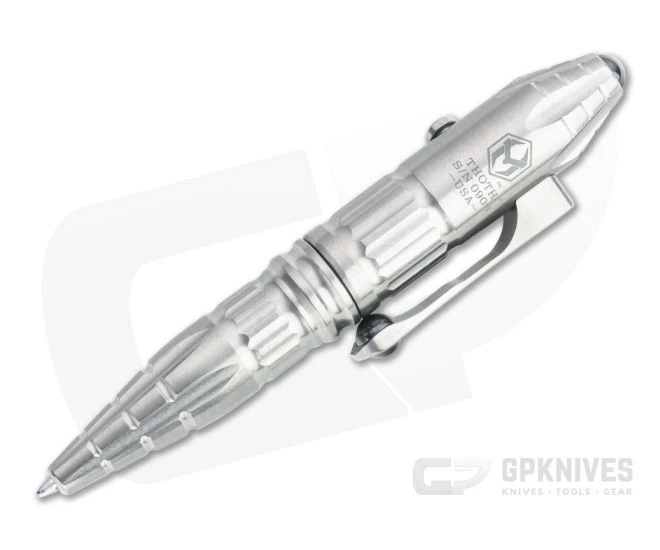 Sometimes you need a full size pen, and sometimes you want something a little smaller for convenience of carry. Heretic Knives Thoth gives you both. This modular bolt action design has a three part body, titanium ends with a copper barrel, that can be configured for full length (+5″) or compact carry (3 3/8″). Simply remove the center barrel and cartridge adaptor and reassemble, no tools required. Bolt action operation is smooth in either configuration and secure carry ensured via the milled Ti clip with tension ball. This version has a tumbled titanium body with matching fluted bolt and green anodized aluminum barrel and.
