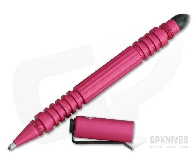The Hinderer Knives Investigator Modular Pen with Black Ink is crafted from CNC machined Aircraft Grade 6061-T6 Aluminum. It has been Pink hard coat Anopeen and matte finished. Now with Black coated Clips and Bullet Ends. Lightweight and overbuilt to take a beating…and give one.