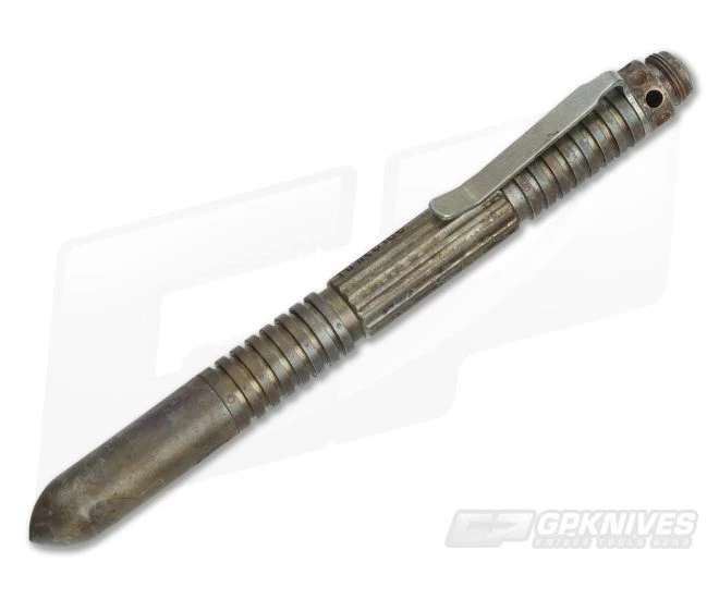 The Hinderer Knives Extreme Duty Modular Pen with Black ink is crafted from CNC machined Stainless Steel with the new “Battlefield Pickup” finish. This is one durable and overbuilt quality writer and doubles as a discreet self-defense tool. The nib is 17-4PH stainless workhorse tool steel and the clip is titanium. The “Battlefield Pickup” finish is a heavy patina that gives each pen a brassy look and unique, hand weathered finish.