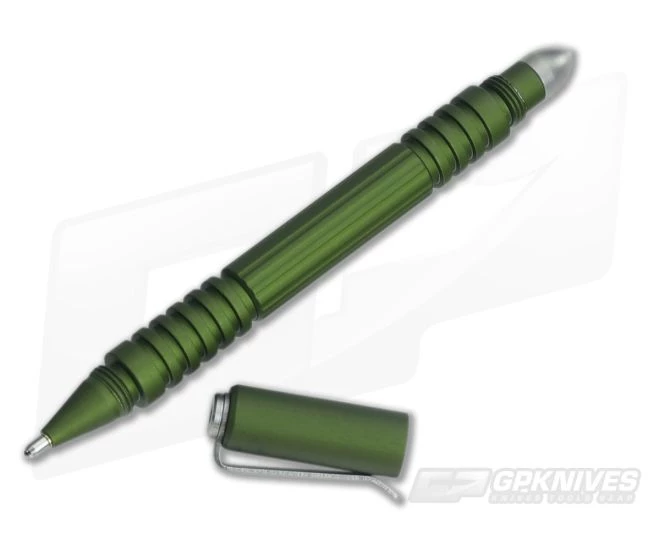 The Hinderer Knives Investigator Modular Pen with Black Ink is crafted from CNC machined Aircraft Grade 6061-T6 Aluminum with a *Type 2 Hardcoat Green anodized finish. Lightweight and overbuilt to take a beating…and give one.