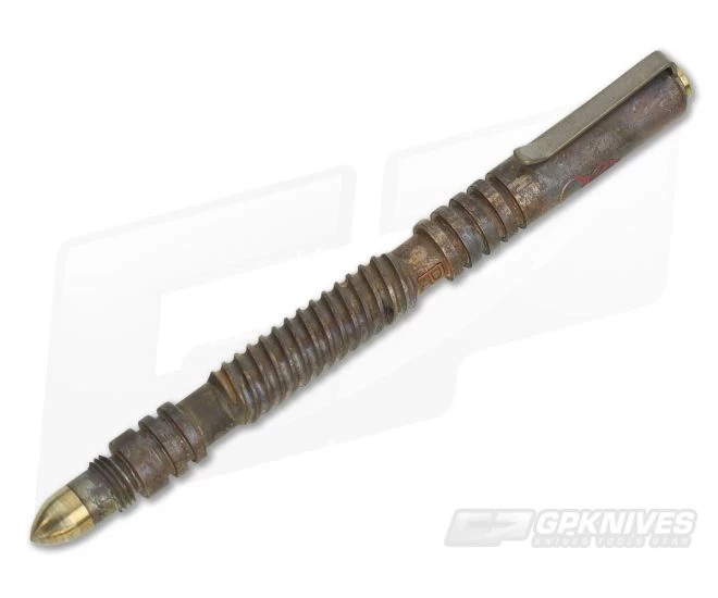 The Hinderer Knives Investigator Modular Pen with Black Ink is crafted from CNC machined Copper with Spiral milling on the body for a great feel and added traction in the hand and the new “Battlefield Pickup” finish. This is one battle-tough pen that will handle all your every day writing tasks while maintaining a high-speed, low-drag profile. The “Battlefield Pickup” finish is a heavy patina that gives each pen a unique, worn and weathered finish.