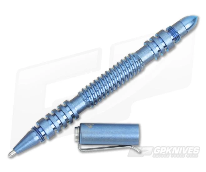 The Hinderer Knives Investigator Modular Pen with Black Ink is crafted from CNC machined Titanium with a tumbled Blue Anodized finish and Spiral milling on the body for a great feel and added traction in the hand. This is one battle-tough pen that will handle all your every day writing tasks while maintaining a high-speed, low-drag profile.