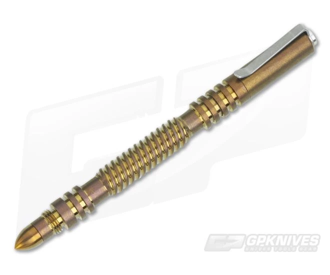 The Hinderer Knives Investigator Modular Pen with Black Ink is crafted from CNC machined Titanium with a tumbled Bronze Anodized finish and Spiral milling on the body for a great feel and added traction in the hand. This is one battle-tough pen that will handle all your every day writing tasks while maintaining a high-speed, low-drag profile.