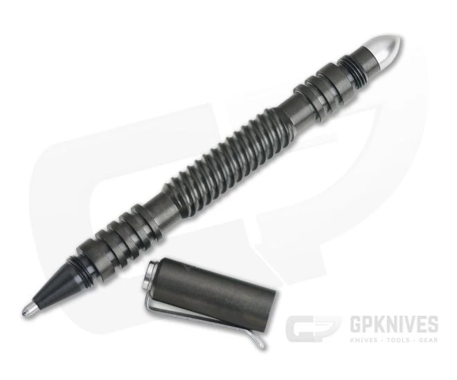 The Hinderer Knives Investigator Modular Pen with Black Ink is crafted from CNC machined Stainless Steel with Spiral milling on the body for a great feel and added traction in the hand. This is one battle-tough pen that will handle all your every day writing tasks while maintaining a high-speed, low-drag profile. This version comes with a Stonewashed Black DLC finish on the body and cap.