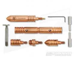 The Rick Hinderer Modular Kubaton Deluxe Set in Copper is the complete package. Everything you need to construct your pen or kubaton with custom cut foam organizer. The raw Copper components will naturally develop a unique patina through time and use.