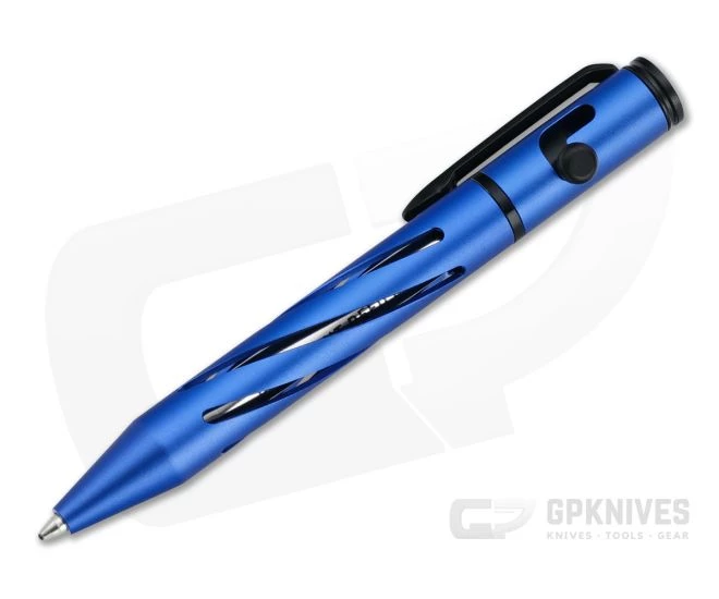 The O’Pen Mini from Olight is a simple bolt action ink pen that makes a compact, lightweight, and durable option for your daily carry writing utensil. Stylish, hollow rifled milling on the anodized aluminum body adds traction while reducing weight. At just over 3.5 inches the pen disappears in the pocket, held secure by the integral clip. The bolt action mechanism is fluid with a nice snap giving it a high fidget factor. A custom stainless steel tipped refill cartridge provides added durability with clean writing for roughly 800 meters of linear ink. This version comes with a blue body.