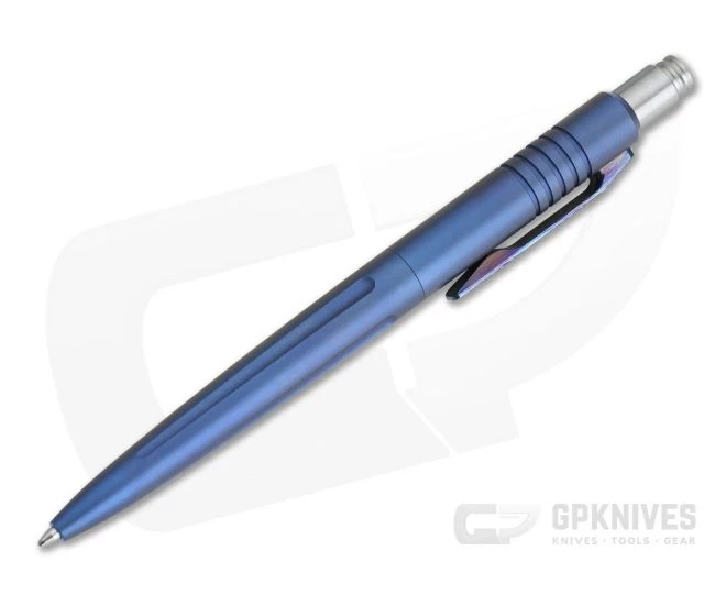 This version is made from Blue anodized Titanium and carries via a milled Mokuti pocket clip with vertical Pena logo.