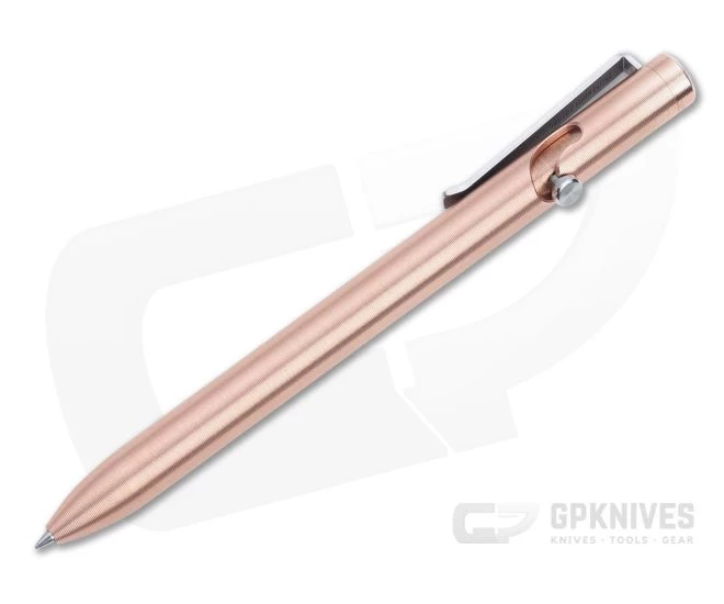 The Tactile Turn Bolt Action pen sports their iconic milled texture for a sure grip, excellent control when writing and a pleasing feel in the hand. The unique ark of the bolt channel allows for more fluid operation, a plus for fidget factor. The Standard 5.6″ size comes with a Pilot G2 0.7 mm refill. This version has a copper body and titanium clip.