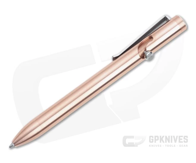 The Tactile Turn Bolt Action pen sports their iconic milled texture for a sure grip, excellent control when writing and a pleasing feel in the hand. The unique ark of the bolt channel allows for more fluid operation, a plus for fidget factor. The Short 5.1″ size comes with a Schmidt EasyFlow 9000 medium refill. This version has a copper body and titanium clip.