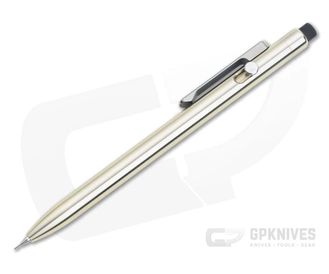 The Tactile Turn Pencil is a bolt action mechanical with the same iconic texture and precision milling as their popular ink pens. Full length milled texture is visual appealing with a sure grip for controlled writing and a satisfying in hand feel. The bolt action mechanism offers a smooth feed and an eraser end gives you a familiar writing experience in an heirloom quality package. This version has a bronze body, titanium clip and 0.5 mm lead.