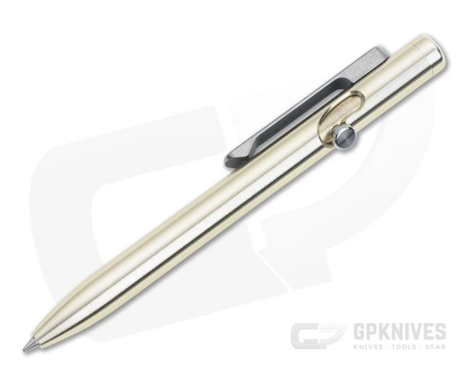 While it is hard to improve on perfection, the Tactile Turn Slim Bolt Action pen retains everything great from the original Bolt Action in a slim body profile that is lighter and more streamlined. Iconic milled texture delivers traction and control in use and a pleasing feel in the hand, while the unique bolt channel ark offers fluid operation, a plus for fidget factor. The Mini 4.4″ size comes with a Pilot G2 Mini 0.7mm refill. This version has a bronze body and titanium clip.
