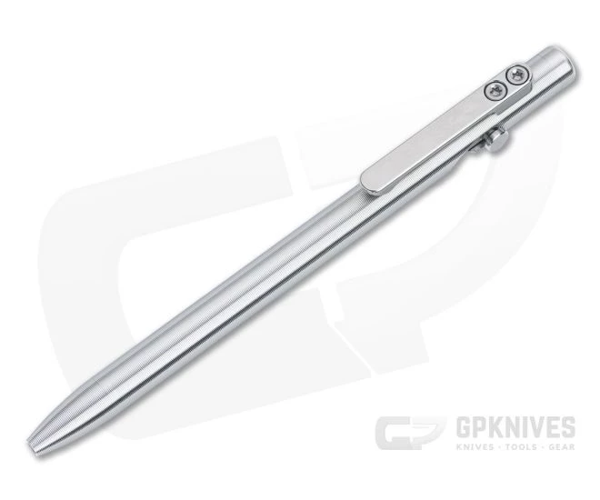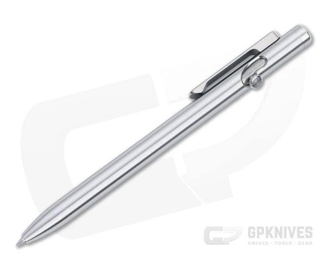 While it is hard to improve on perfection, the Tactile Turn Slim Bolt Action pen retains everything great from the original Bolt Action in a slim body profile that is lighter and more streamlined. Iconic milled texture delivers traction and control in use and a pleasing feel in the hand, while the unique bolt channel ark offers fluid operation, a plus for fidget factor. The Standard 5.6″ size comes with a Pilot G2 0.7 mm refill. This version has a titanium body and clip.