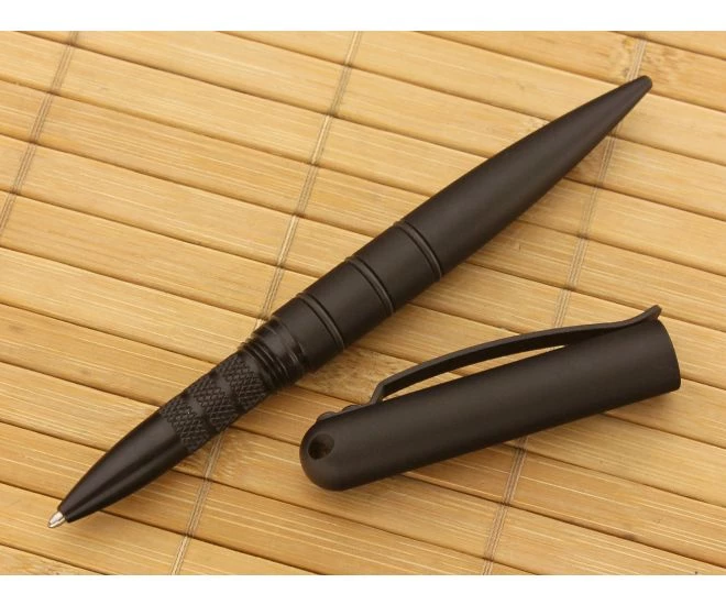 The Tuff-Writer Frontline Series Pen in Midnight Black “Sanitized” Shorty Generation 2 with Black ink takes tactical writers to a whole new level. Constructed from 6061-T6 aerospace grade aluminum, the shorter body gets a satin finish non-marking surface treatment before being hard anodized black to MIL-A-8625 “F” specifications. This durable finish reduces glare and fingerprint markings. Built with a sharp/pointed end as well as rounded with the point doubling as a PDA stylus. An attached cold-pressed spring steel clip has a textured non-reflective powder coat finish. Black oxide stainless steel bolts and chemical welding construction. Includes Extra Tuff pen case and accepts Fisher Space ink refills – #SPR4/Foray #877294.
