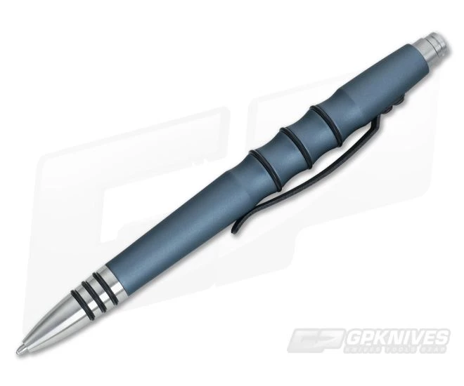 This “clicky” tactical pen features a 6061 T-6 aerospace grade aluminum body which has been satin finish non-marking surface treated before being hard anodized gray to MIL-A-8625 “F” specifications. This durable finish reduces glare and fingerprint markings. The body of the pen has been comfortably contoured and also has removable black Duron O-rings for a secure grip. Built with a machined 303 stainless steel satin finished head for balance and superior tip strength.