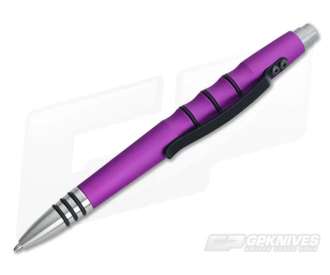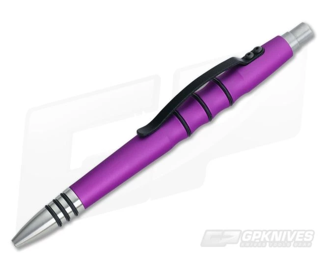 The Tuff-Writer Precision Press Series (PPS) Tactical Ink Pen in Purple with black ink takes tactical writers to a whole new level! Tuff-Writer is committed to bringing you some of the highest quality, USA made, functional tactical pens on the market, which includes their Precision Press “Clicky” series. This “clicky” tactical pen features a 6061 T-6 aerospace grade aluminum body which has been satin finish non-marking surface treated before being hard anodized PURPLE to MIL-A-8625 “F” specifications. This durable finish reduces glare and fingerprint markings. The body of the pen has been comfortably contoured and also has removable black Duron O-rings for a secure grip. Built with a machined 303 stainless steel stain finished head for balance and superior tip strength. The click-action on the pen features a two piece bearing-cam design which offers silky smooth action and almost eliminates the “click” sound. An attached cold-pressed spring steel clip has a textured non-reflective powder coat finish. Black oxide stainless steel bolts and chemical welding construction. Includes Extra Tuff pen case and accepts Fisher Space ink cartridge – #SPR4. Accepts Fisher and Foray ink cartridge refills.