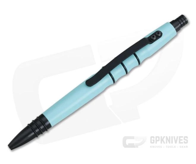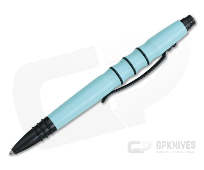 This “clicky” tactical pen features a 6061 T-6 aerospace grade aluminum body which has been satin finished and non-marking surface treated before finally being coated with a durable poly-ceramic Teal Cerakote. This durable finish reduces glare and fingerprint markings while retaining a striking visual appeal. The body of the pen has been comfortably contoured and also has removable black Duron O-rings for a secure grip. Built with a machined and black coated 303 stainless steel head for balance and superior tip strength.