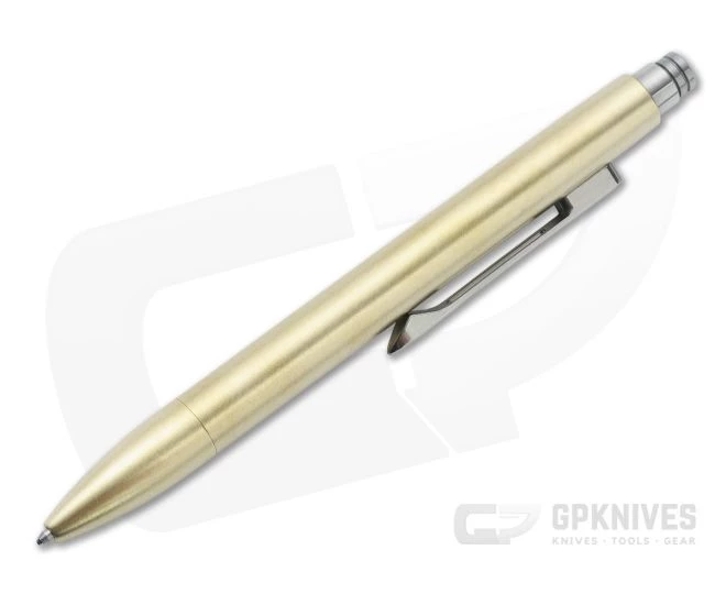 The Tuff-Writer Retro Click offers a sleek modern design with tactical build quality. Utilizing their famous 416SS machined advancing mechanism with a two piece bearing-cam design, the Retro Click delivers silky smooth action with an ultra quiet operation. The modular brass construction offers a solid heft and stylish look paired with the smooth barrel and o-ring free design. Body and tip have a brushed “orange peel” texture finish. Carries via a milled titanium clip.